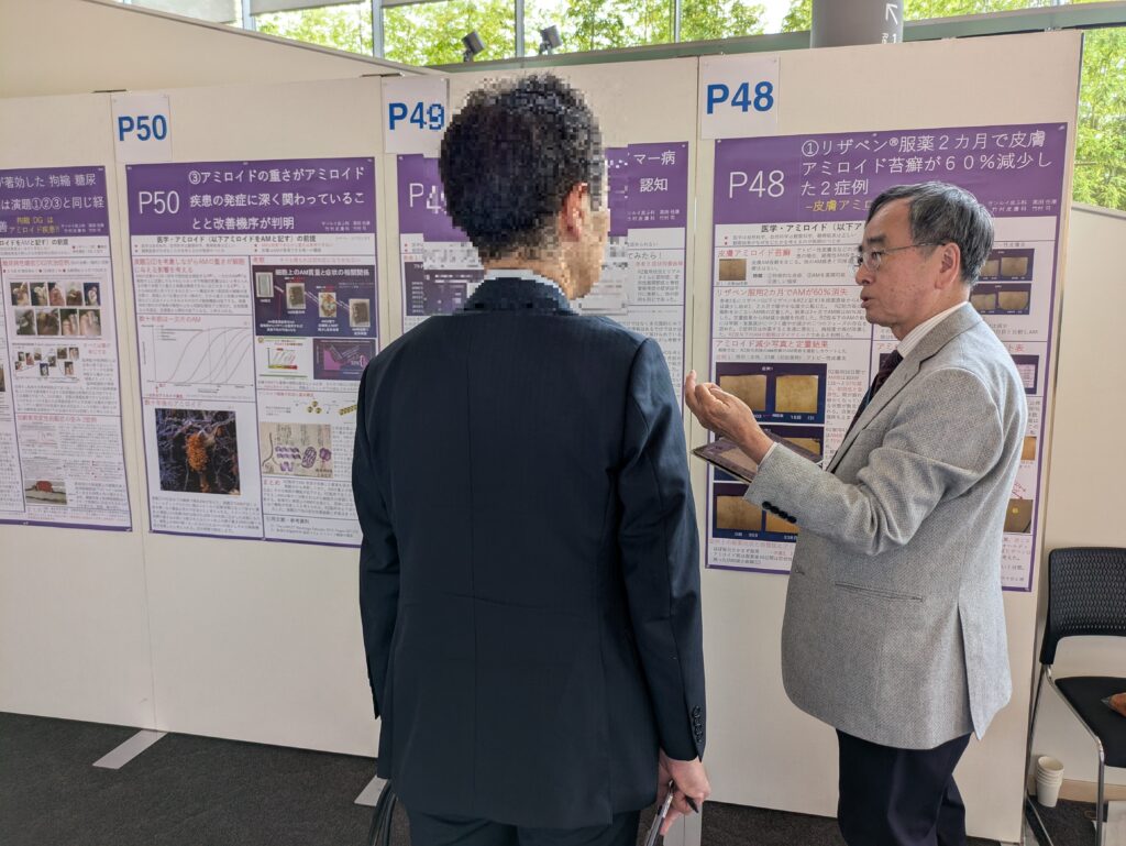 ポスター自由討論の時間外にも閲覧いただき、高田が丁寧に説明させていただきました。改善例、作用機序など興味深く聞き入っていただきました。